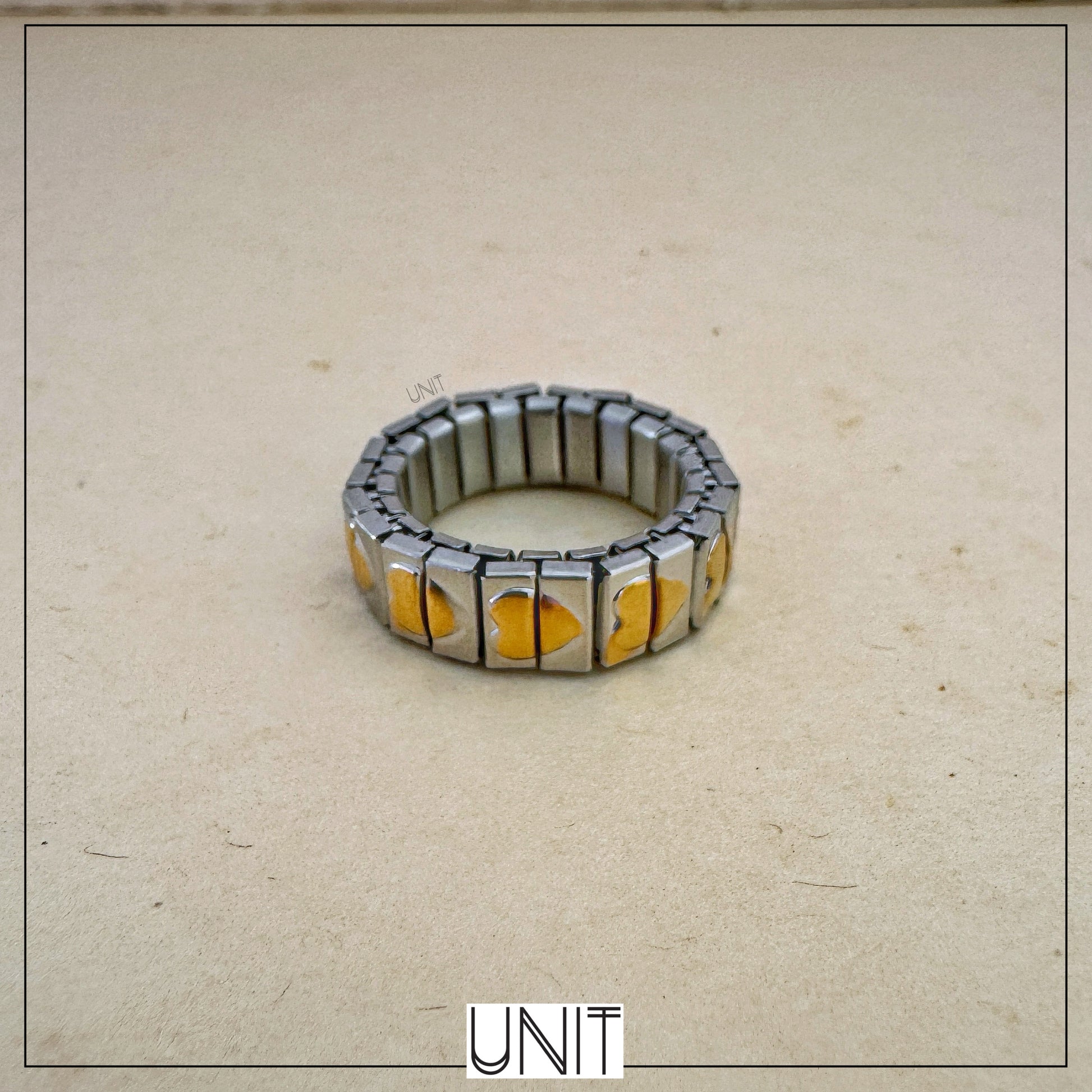 A modern twist on a classic, the Amor Link Ring features interlocking silver-toned links highlighted with golden heart details. Playful yet minimal, it’s perfect for stacking or wearing solo.