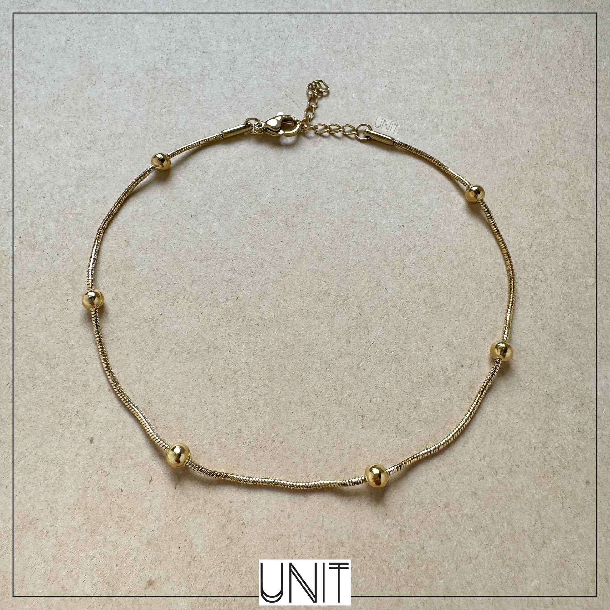 Minimal and effortless, the Lina Anklet pairs a slim gold-toned chain with spaced bead details. A subtle touch of shine designed for everyday wear.