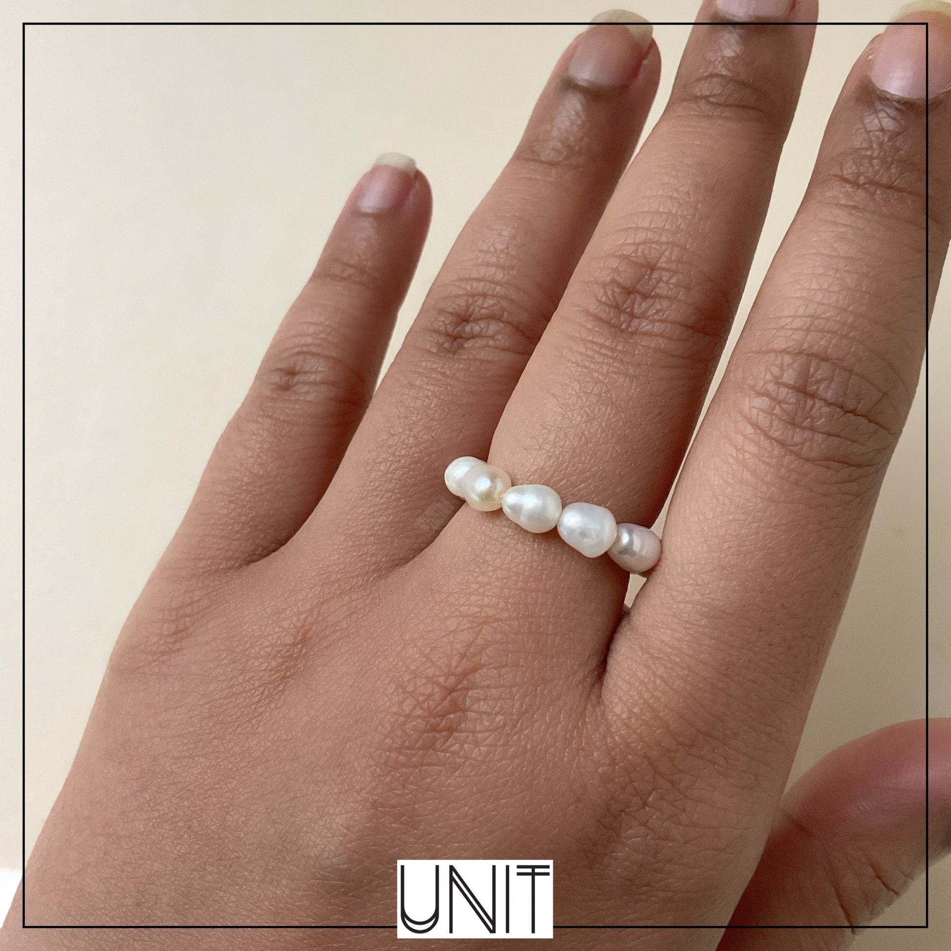 Understated elegance meets natural beauty with the Lueur Pearl Band. A slim ring strung with lustrous freshwater pearls, offering a soft and timeless touch.